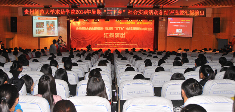 10月23日晚,求是学院2014年青春“三下乡”暑期社会实践活动总结评选暨文艺汇演在求是讲堂举行,参加2014年暑期“三下乡”社会实践的六支队伍参加了总结汇报和文艺汇演。求是学院党委副书记万平、团委副书记张怀德以及各“三下乡”服务队指导老师担任汇报评选评委。各服务队队员及学生代表近500人观看汇报和文艺汇演。
