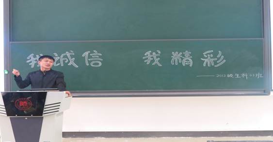 为激发学院学生争做诚信大学生的自豪感和使命感,培养诚信品格,塑造诚信人生,10月27日下午,生命科学学院2012级学生于理科综合实验教室开展“我诚信,我精彩”、“诚信手牵手”主题班会。