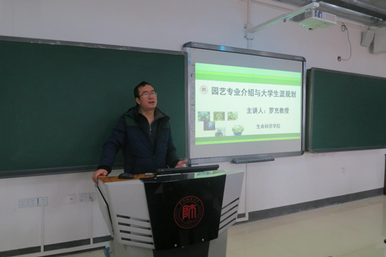 为帮助园艺专业的14级新生尽快走出专业学习的困惑,更加深入的了解学科专业的相关内容,改变传统就业观念,明晰专业就业方向和前景,科学有效的规划大学生活,生命科学学院于11月11日下午,在花溪校区理科综合实验楼5B07教室开展了2014级新生“共筑梦想 青春同行”系列活动之“园艺专业介绍与大学生涯规划”专场讲座。讲座邀请了生命科学学院罗充教授作主讲人,辅导员余阳主持。