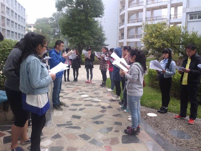 民族文化的复兴,民族精神的弘扬,当从诵读经典开始。“三字经”、“弟子规”“孝经”等基本文学篇目,是求是学院文传系学子及嘤鸣社社员必读、必背篇目。“人之初,性本善”、“ 冬则温,夏则凊”,句句理浅却意深。嘤鸣社社员冯春秋说:“晨读让我们精神饱满,‘温故而知新’,我们揣度古意,感受历史,总会有新的感悟。”