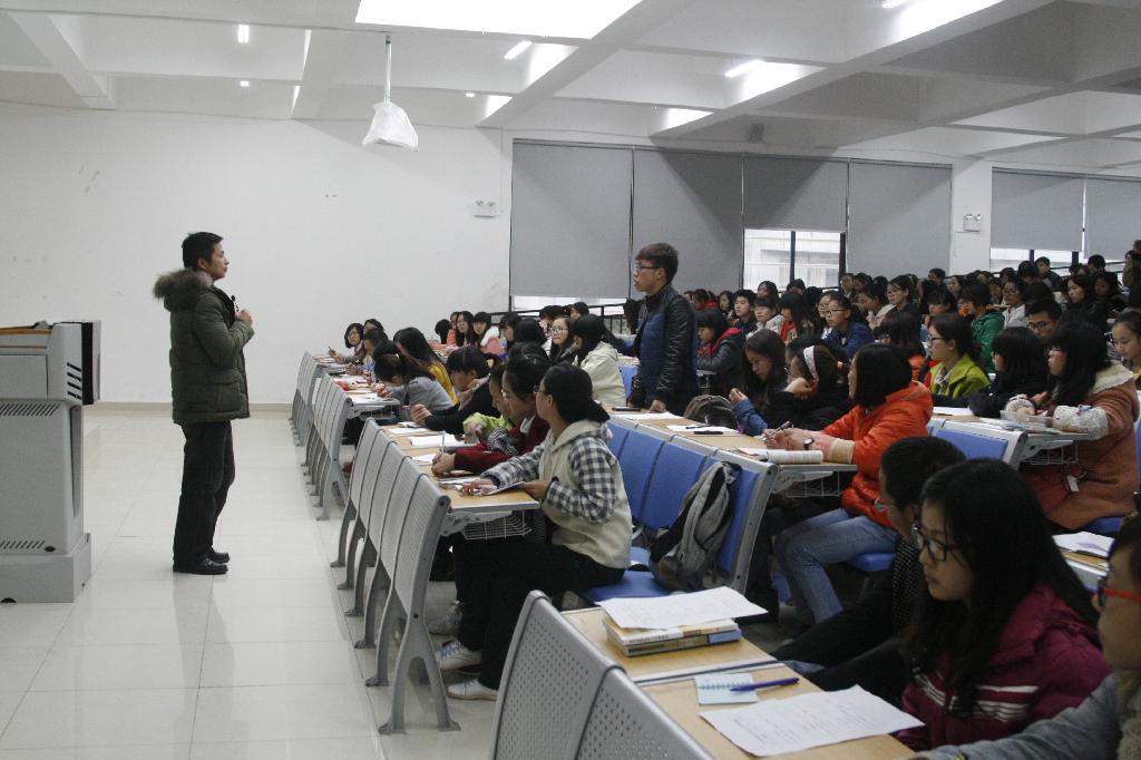 11月11日,教育科学学院于花溪校区GJ6301教室开展2014—2015学年“青年马克思主义者培养工程”学生骨干培训系列专题讲座第一讲之“学生干部的角色定位和能力培养”。讲座由院党委副书记罗洪刚主讲。学生会、青分会全体成员、各级各班班委共计270余人到场聆听。讲座由院团委书记高阳主持。