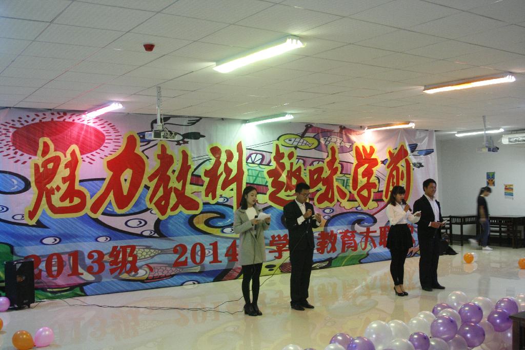 11月14日下午,教育科学学院2013级、2014级学前教育专业联欢会在教育科学学院楼五楼阶梯教室举行。学工部学生管理科科长杨红艳、学工部奖助学管理科科长袁松、学工部思政国防科科长李帆、学工部办公室主任夏天、学工部办公室副主任胡晔、学工部管理科杜蕊、学工部办公室樊昊、国防科彭伯韬、学工部信息管理科吴爱梅、生命科学学院周宾、教育科学学院团委书记高阳、教育科学学院2013级兼职辅导员(学工部思政国防科副科长)周昌艳等领导及老师应邀出席此次联欢会。