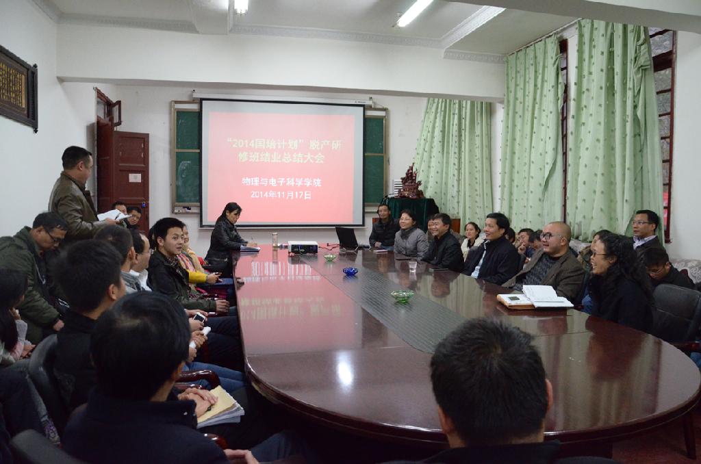 11月17日,物理与电子科学学院“2014国培计划”脱产研修班结业总结大会在物电学院二楼会议室举行。物电学院院长陈世国教授、党委书记宇燕教授、副院长宋晓书教授、支启军教授、副书记李应发教授、培训班班主任、部分授课教师、物理和通用技术国培班全体学员参加了大会。大会由副院长宋晓书主持。