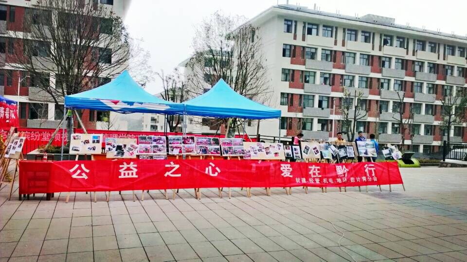 11月25日,由共青团贵州师范大学委员会主办,贵州师范大学“阳光使者”青年志愿者联合会承办,经济与管理学院、地理与环境科学学院、数学与计算机科学学院、材料与建筑工程学院、机械与电气工程学院青分会协办的“公益之心,爱在黔行”公益图片展活动在贵州师范大学花溪校区二食堂门口正式展开。