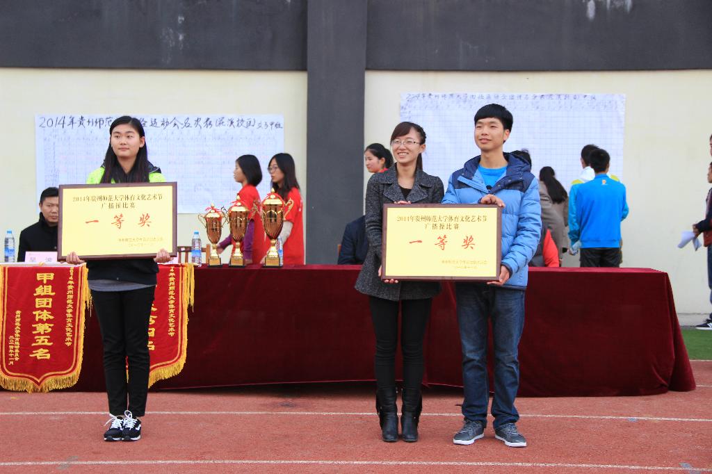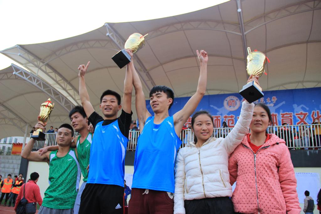11月21日下午,当地环运动健儿站上体育文化艺术节团体总分第一的领奖台双手举起荣誉奖杯时,学院彻底沸腾了!王者桂冠再次加冕——地环学院以195.5的总分,勇夺2014年贵州师范大学体育文化艺术节甲组团体总分第一名,连续三年蝉联桂冠,同时获得广播体操第一名。地环运动健儿的成功绝非来自于偶然,而是长时间辛勤付出、积极备战、团结协作的最好诠释。