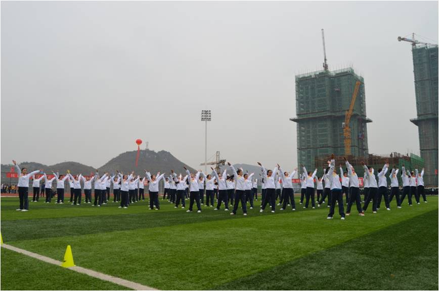 作为每年的一项常规工作,院团委在学校文件下发之前就开始选拔、组织运动员开始投入训练。每天下午、周末都是训练时段。诚然,训练是枯燥无味的,一圈圈的奔跑练习,是不易的。艰辛的汗水浸透了衣衫,一次次的飞跃都在晚霞映照下,舞动而优美。奔跑、再奔跑,不休不止,仿若不知疲倦却只为追逐着心中那抹美好!热身跑,长、短跑特训,跳远,深蹲······,“严酷”的教练铁面无私的监察着运动员们每一项项训、每一次动作。直至夜幕降临,运动员们才拖着筋疲力尽的身躯晚归。这是一场毅力的挑战,这里没有缺席也没有抱怨,有的只是坚持和拼搏。疲惫已经司空见惯,伤痛也早已习以为常,咬牙坚持的无非是一份永不言弃的决心和一份坚忍不拔的斗志。为了心中的那一份坚守、为了学院再创辉煌的重任,这群90后学子经历了风霜的洗礼,伤痛的考验,其实每一位运动员早已脱胎换骨、蓄势待发。在广播操的训练中,同学们不畏寒冷的初冬,依旧在每天清早、晚上进行着艰苦的训练,心中只有一个念头——为地环争光,为自己争光。