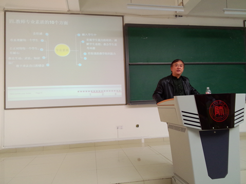 成卫星以“教师职业的选择”、“教师的专业化”、“教师的成长规律”、“教师的专业素质”和“教师专业成长”为主线,融入其专业发展经历,在与同学们分享其下乡当知青、参加文革后第一次高考、选择教师职业以及从教后的发展等经历的同时,勉励同学们珍惜当下、扎实专业基础、拓展知识面、锻炼身体,并无形中引导同学们制定自身的专业成长规划,争取成为一名卓越的数学教师。