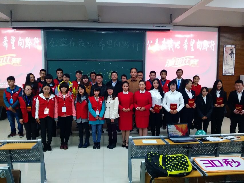 为响应贵州高校希望工程爱心使者联盟号召,旨在构筑“中国梦”的精神高地,培养贵州高校公益骨干,大力开展公益宣传、形成良好的社会效益。12月1日晚,“公益在我心,希望向黔行”公益演讲比赛总决赛在我校花溪校区GJ6201教室隆重举行,党委宣传部张皓、图书馆邵广盛、校团委邵云贺等教师及研究生支教团唐婉贞应邀担任比赛评委。