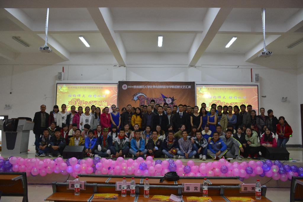 12月5日下午,化学与材料科学学院2014级迎新文艺汇演在职院五楼礼堂拉开了序幕,此次汇演主题为 “放飞梦想,激情化材”。校学工部部长任胜洪,校团委副书记姚作舟,职业技术学院党委副书记印明富以及化材学院党政领导刘应猛、陈卓、王光彦、秦好丽、胡长刚、孟忠常出席。学院部分老师以及各兄弟学院的团委学生会负责人、学院师生参加。