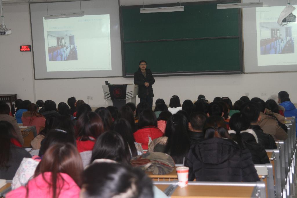 12月10日,校就业指导中心主任赵东于花溪校区GJ6301教室为教育科学学院学生作了题为“路在何方?本科生就业指导”专题讲座。学院团委书记高阳、辅导员陈雨昕出席讲座,2011级各专业共计300余人聆听讲座。讲座由高阳主持。