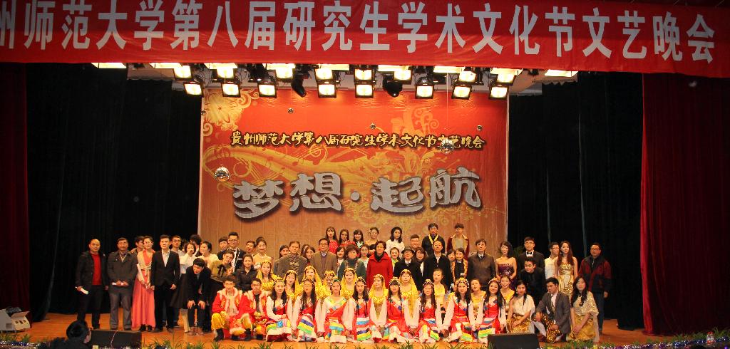 音韵飞扬,华灯绽放,梦想起航。12月11日晚19点,在我校宝山校区大礼堂隆重举行了第八届研究生学术文化节文艺晚会。校党委书记韩卉、校长李建军、校党委副书记银熙惠、副校长蔡永生、乙引、校纪委书记唐本文、研究生院院长(研究生工作部部长)梁虹、相关职能部门负责人、部分培养单位的领导和老师、贵阳各高校研究生会(学生会)代表及我校研究生一千余人共同观看了演出。