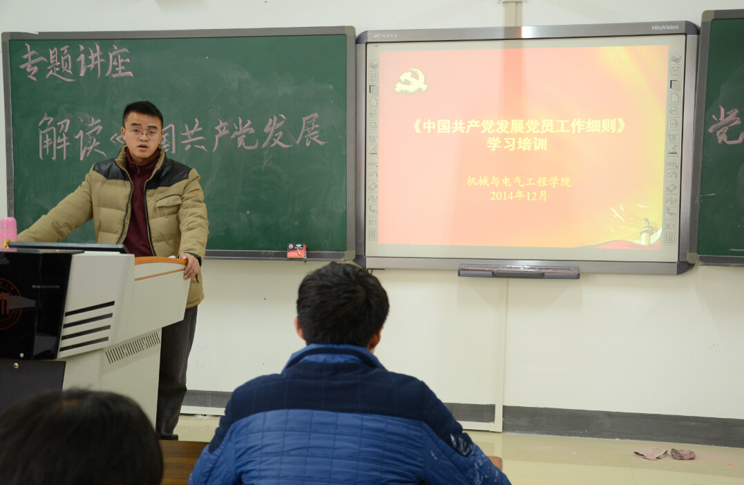 12月12日,我院举办第五期学生党务工作培训班,培训班以“解读党员发展新细则 明确党建工作主任务”为主题,全院各党支部委员、团支部委员和学生党建工作中心工作人员共计53人参加了此次学习培训活动。培训班共安排一次专题讲座、一次分组自学讨论和一次户外素质拓展活动。