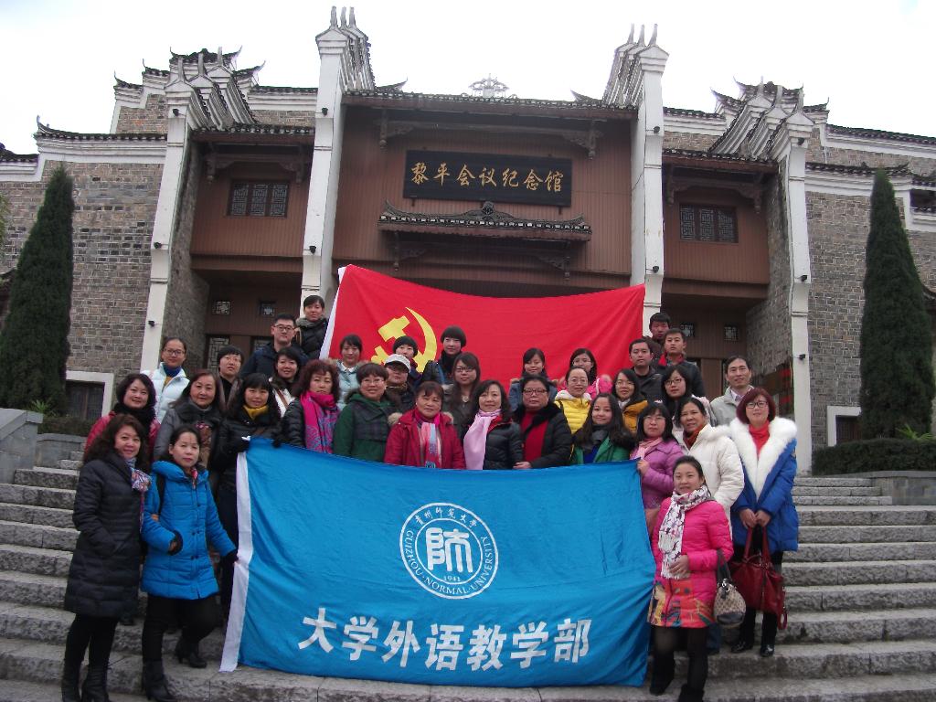 12月12日,大学外语教学部党总支组织全体教职工党员赴黎平会议旧址开展一次党建特色活动。组织开展了学习党的十八届三中全会和四中全会精神知识抢答赛,并通过参观黎平会议纪念馆提高党员对党史的认识了解,坚定理想信念。