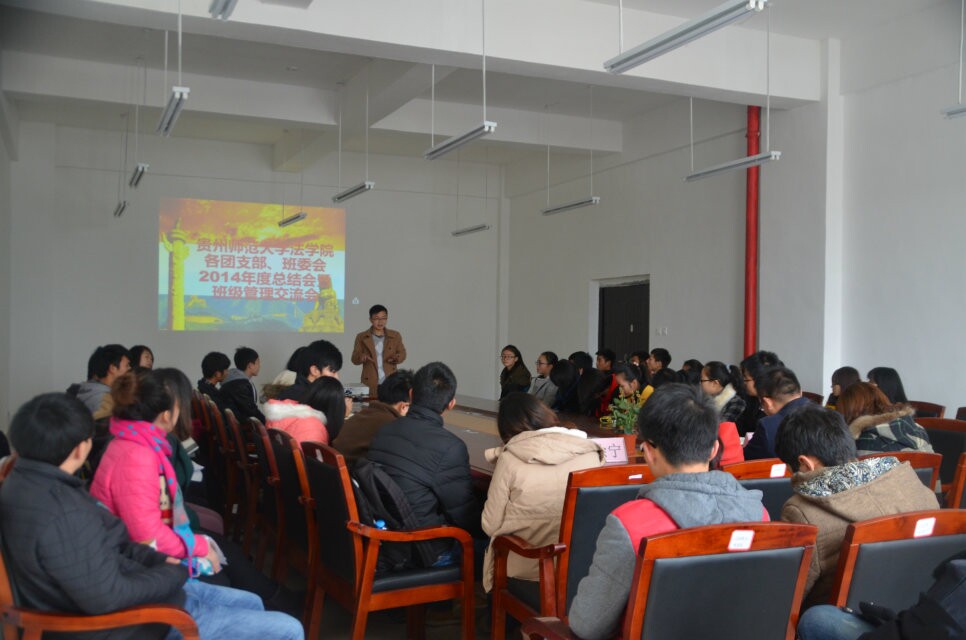 为全面加强对学院各团支部委员会、班级委员会的管理,提高其服务水平,法学院于12月18日,在花溪校区学生活动中心会议室开展了“法学院团支部及班委会2014年度总结会暨班级管理交流会”。学院团委副书记何成忠、2011级辅导员徐宁、2012级辅导员陈荣霞、学院四大学生组织第一负责人以及各年级各团支部和班委代表。会议由冉剑锋主持。