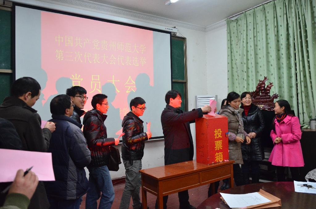 会上,宇燕阐述了召开本次学院党代表选举大会的主要工作和重要意义。为了确保选举工作的严肃性和有效性,大会严格按照选举程序进行,通过了《物理与电子科学学院出席中国共产党贵州师范大学第三次代表大会代表选举办法(草案)》、通过了监票及计票工作人员名单、宣读了五位候选人的个人简历;在监票人的监督下,全体党员进行了投票,选举出了学校第三次代表大会的代表4名:吕国富、刘万松、宇燕、陈世国(按姓氏笔画排列)。