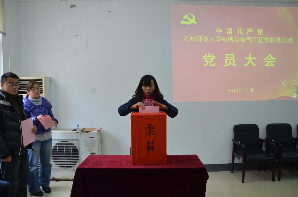 12月18日,机械与电气工程学院在花溪校区机电楼会议室召开党员大会选举出席中国共产党贵州师范大学第三次代表大会代表。学校第三次党代会筹备工作组丁俊到会参与指导服务工作。机械与电气学院党员大会应到党员46名,实到党员41名。会议由学院党委书记陈椽同志主持。