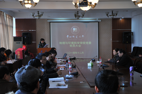12月19日,地理与环境科学学院党委在宝山校区地环楼五楼会议室召开党员大会选举出席中国共产党贵州师范大学第三次代表大会代表。学校第三次党代会筹备工作组王媛君到会参与指导服务工作。地理与环境科学学院党员大会应到党员75名,实到党员67名, 到会人数超过应到人数的4\5。会议由地理与环境科学学院党委书记杨建红主持。