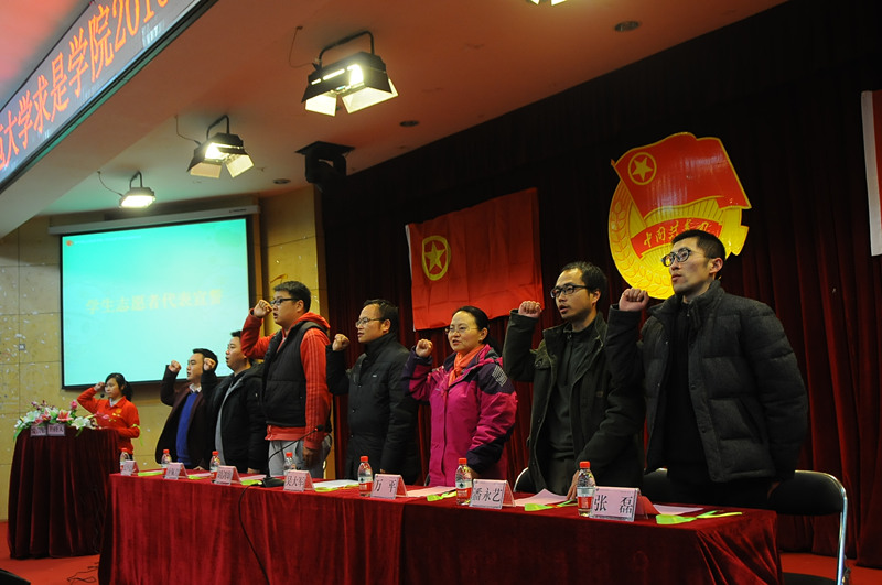 3月4日,求是学院在求是讲堂举行了以“雷锋在身边,文明校园行”为主题的志愿活动月启动仪式。求是学院党委副书记吴大军、万平,团委副书记张怀德出席了启动仪式,各系团总支书记、辅导员老师、教师志愿者代表、学生志愿者代表参加了启动仪式。