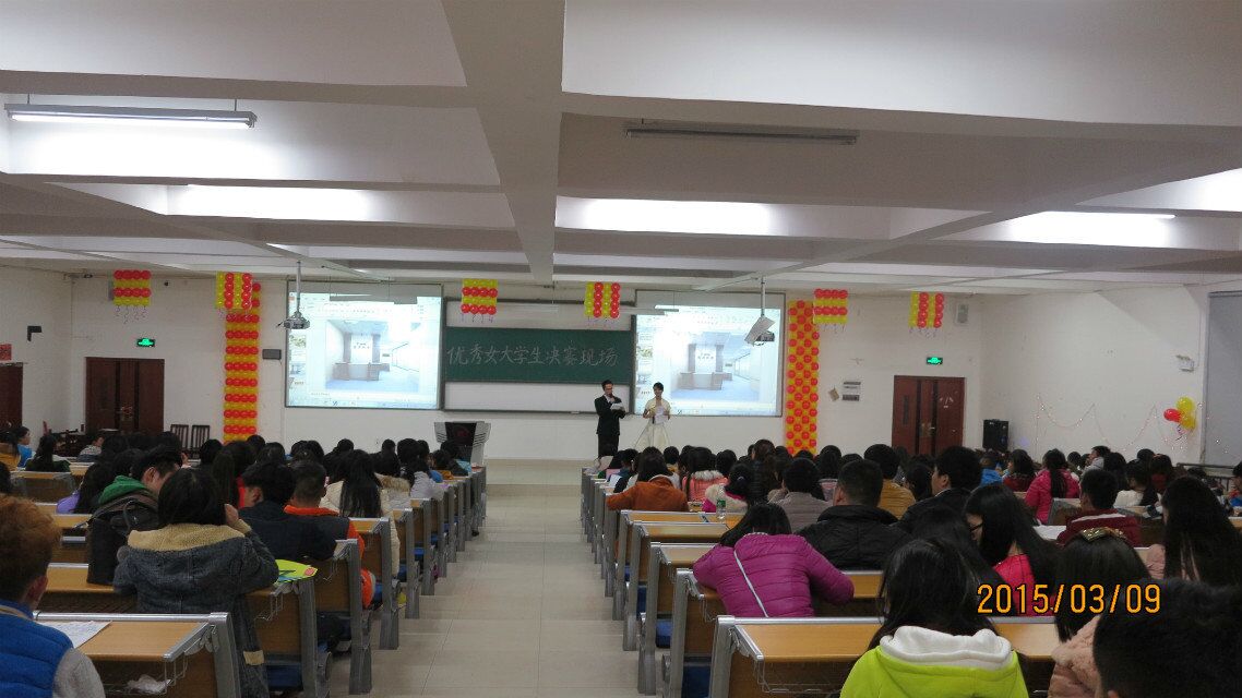 为了推进校园文化的建设,积极发挥优秀女大学生在校风、学风建设中的示范带动作用。经过上学期进行的初赛、复赛角逐。3月9日晚,经济与管理学院在花溪校区公共教学楼GJ6301举行了“优秀女大学生”评选决赛。特邀国旅学院团委书记尹邦峰,经管学院团委书记张晶晶,辅导员赵元钊、李庆担任评委,学院部分学生代表担任大众评审。学院各年级300余名学生观看决赛。