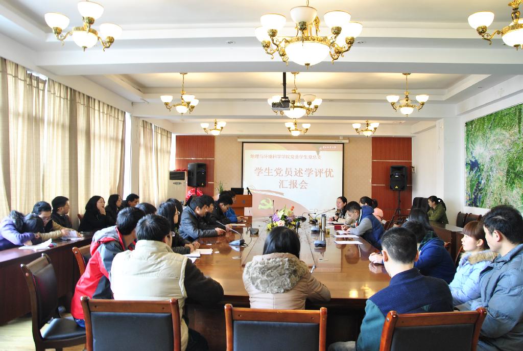 3月13日,地理与环境科学学院党委学生党总支开展了学生党员述学评优活动。地理与环境科学学院与中国南方喀斯特研究院20个学生党支部的30余名学生党员进行了述学汇报。学生党总支委员担任评审,各学生支部书记、部分学生代表参加汇报会。汇报会由学院党委组织员、学生党总支书记郭锐主持。
