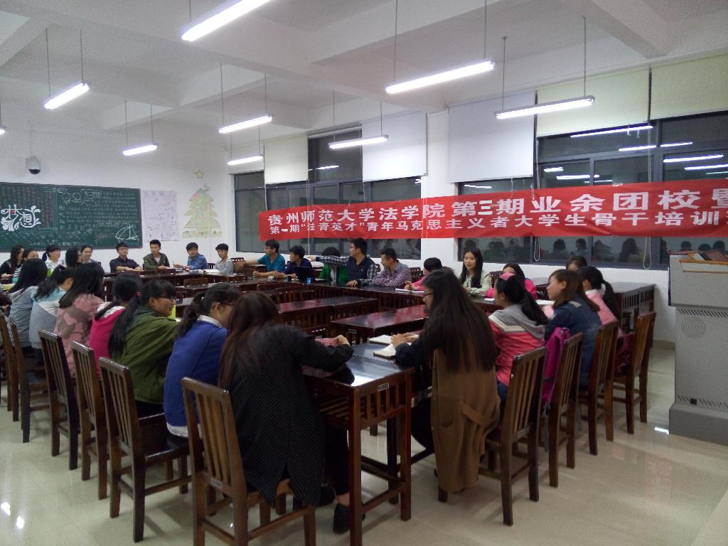 法学院此次第三期业余团校暨第一期“法青英才”青年马克思主义者大学生骨干培训理论的学习依此邀请到了法学院团委书记欧秀松、团委副书记何成忠、贵州师范大学校青联老师邵云贺老师以及贵州师范大学校学生会、校青联、校艺术团等优秀学生干部向大家分享了他们的工作经验和成长历程。这些理论经验的交流让同学们受益颇深,不仅提高了法学院优秀学生和学生干部综合素质和求学意愿、团结向上的精神,同时也为接下来的实践学习阶段打下了良好的基础。相信法学院接受培训的同学一定能将学习到的理论知识指导实践行动,为推进法学院的学生工作和青马工程奉献一己之力,凝聚正能量。
