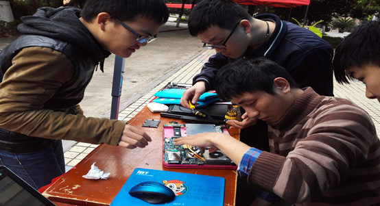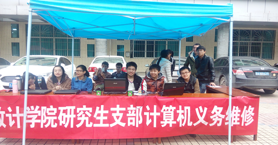 为了给广大师生解决电脑的系统故障、提供维修平台,3月26日,2013级研究生党支部组织党员、入党积极分子在宝山校区文科楼门前举行“弘扬雷锋精神,义务维修电脑”的活动。
