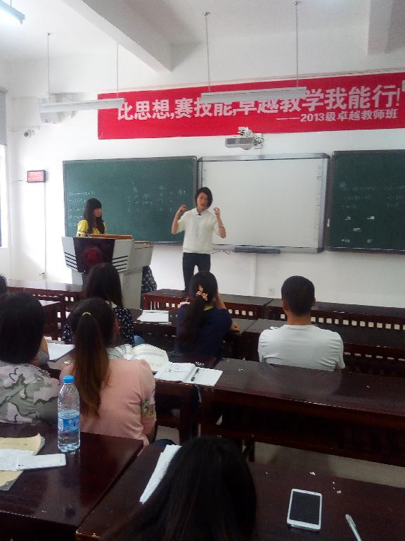 为回报学院的高度重视和老师们的精心培养,也为提高同学们的教师教学技能,4月1日上午,以“比思想,赛技能,卓越教学我能行”为口号的数学与计算机科学学院2013级卓越教师班教学技能大赛于GJ2203教室举行。