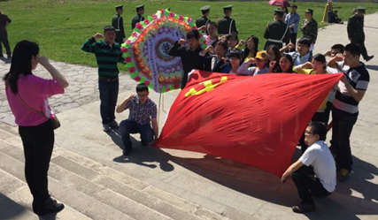 来到墓地前,同学们神情肃穆,面碑而立,向为争取民族独立、人民解放、国家富强而献出生命的革命先烈默哀一分钟,并敬献了花圈和鲜花,朵朵鲜花,象征着革命先烈的伟大与无私,寄托着同学们对先烈的深切追思和无限敬仰。
