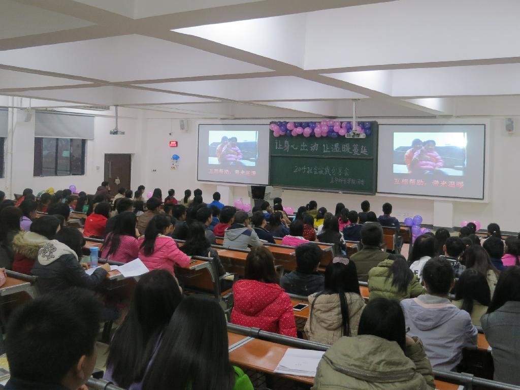 活动以“让身心出动,让温暖蔓延”为题,由2012级的王忠梅、何代燕和2013级的余红双同学分享寒假社会实践中的所见、所闻、所感。院团委书记李伟,辅导员刘学鑫、王超、余阳及寒假社会实践活动优秀志愿者、各班青年学生代表参加了会议。