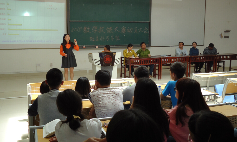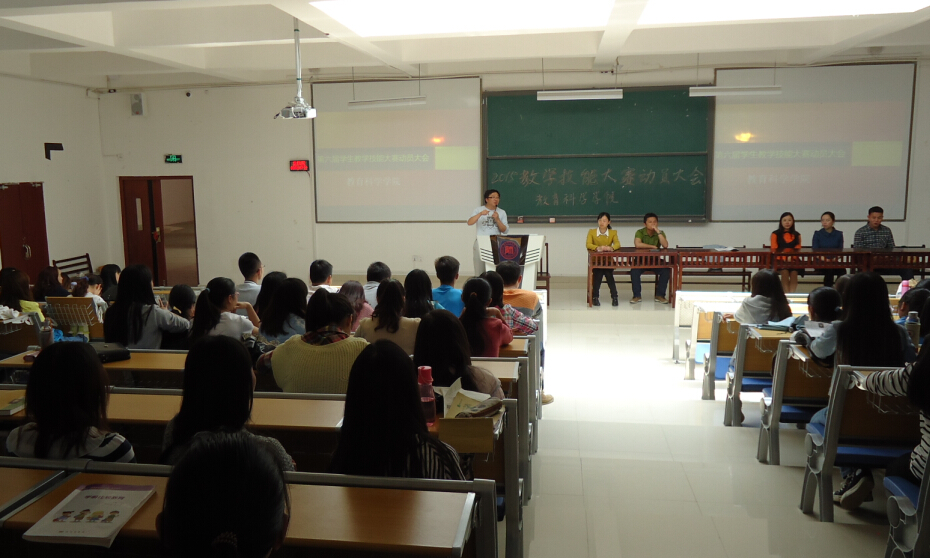 刘军做动员讲话强调,教学技能大赛的举办是凸显我校属于师范类院校的办学特点,教育科学学院作为立足于教育教学研究的院系,其学科建设和学生培养方向都与教师职业技能密切相关,也是学院特点的体现;除此之外,刘军针对本学院大多数学生未来从事教师行业的实际呼吁大家珍惜这个锻炼机会,重视此次比赛;他希望同学们都能够做好充分的准备,为顶岗实习打下良好基础。