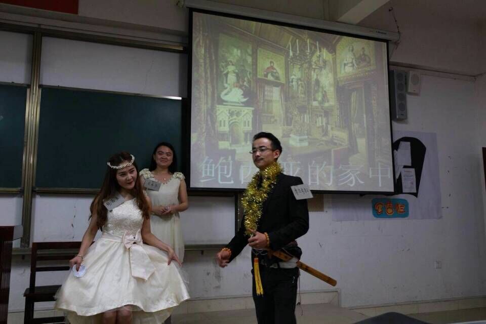 4月16日下午,正在学习篇目《吝啬鬼》的2013级汉语言文学专业(5)班把剧中的形象带到了课堂。同学们以法国喜剧作家莫里哀的经典之作《吝啬鬼》为原本进行演绎,叙述了主人公阿巴贡爱财如命,吝啬成癖的守财奴形象。参演的学生们都倾情投入,把剧中人物演得栩栩如生,赢得了观众阵阵掌声,唤起了观众对经典著作的关注和喜爱。该课程任课老师杜望舒也对同学们的演出给予了充分肯定,并表示以课本剧演出的形式能更好地激发同学们对专业学习的兴趣。