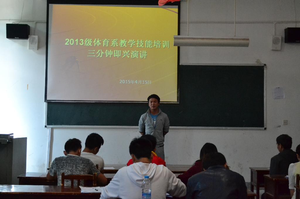 一言之辩,重于九鼎之宝;三寸之舌,强于百万之师。为提升体育系学生的教学演说能力,活跃课堂气氛,求是学院体育系在实践周系列活中开展3分钟即兴演讲,从大学生、课余生活、起跑线、竞争等50个话题中抽选演讲题目即兴演讲。演讲过程中,同学们结合自己的求学经历和社会实践阐述各自的看法和理解,通过演讲提升学生的胆量和演说能力。