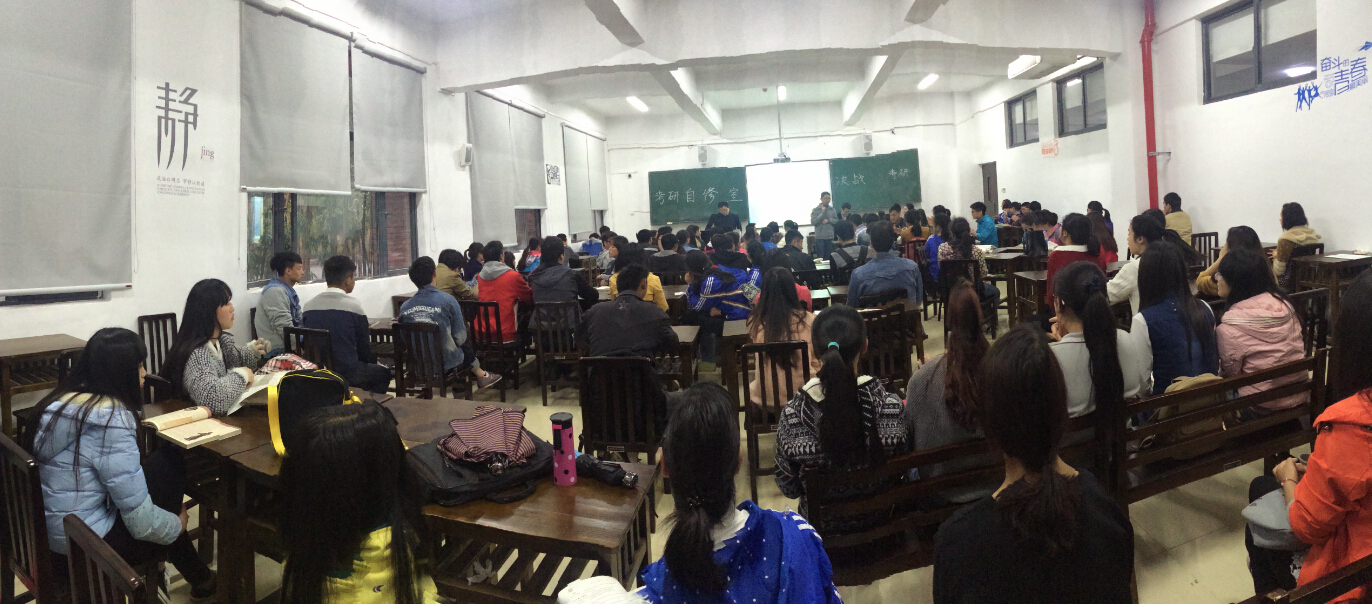 为深入拓展“灯塔引领、同心向党”基层党建创新活动,进一步发挥研究生党员模范引领作用,推进全员、全过程育人格局的完善,4月22日,地环学院在花溪校区学院楼考研自修室开展接待日系列活动——决战2016考研咨询交流会。院研究生科胡丰青老师,14级研究生高策,苏琪娇,刘玲等同学来到花溪校区为准备考研的同学提供服务和帮助,学院2012级,2013级,2014级有意向考研的100余名本科生参加了交流活动,活动由学生党总支委员徐黎明老师主持。