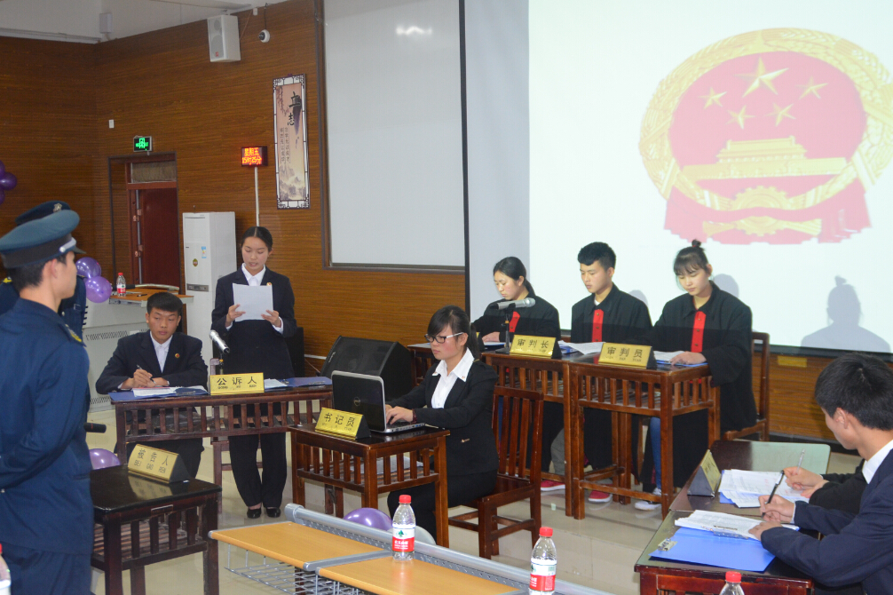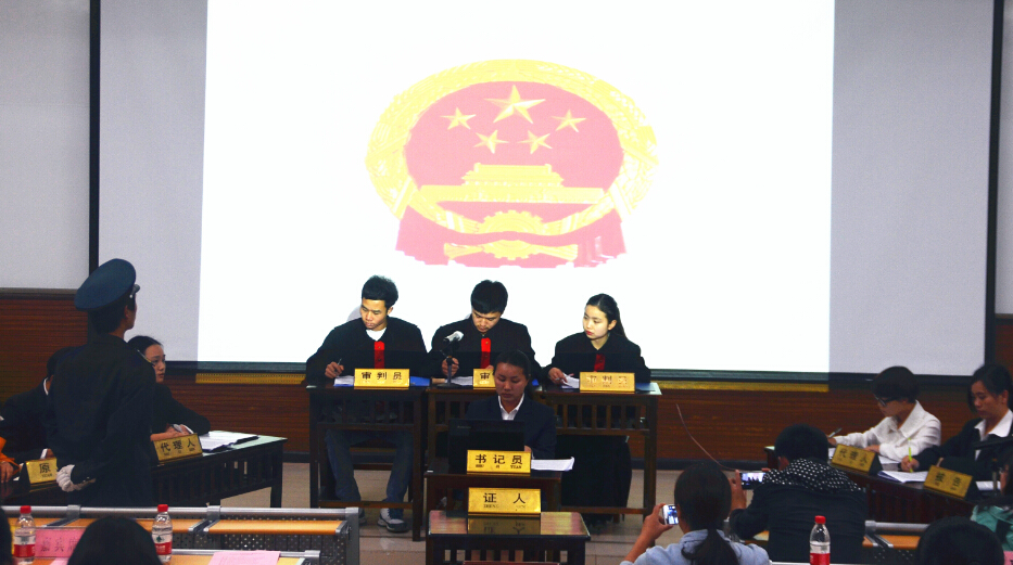 为增强法学院学生的法律知识运用能力,实践能力,在法学院团委、学生会的组织下, 4月24日,法学院第十届法律文化节系列活动之模拟法庭表演赛在花溪校区GJ6201教室开展。法学院副教授杨贵生、法学院团委书记欧秀松、副书记何成忠以及2012级、2013级、2014级全体学生参加。