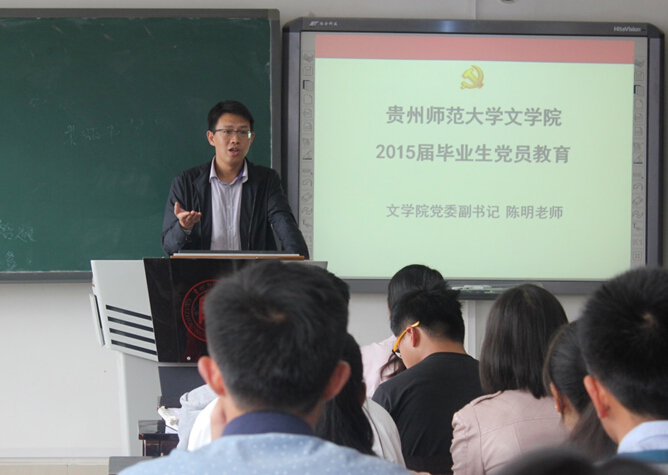 为认真做好2015届毕业生党员的教育、管理和服务工作,在文学院党委的高度重视和统一部署下,文学院学生党总支于4月28日、4月19日分别在花溪、宝山校区组织召开2015届毕业生党员大会。两个校区的毕业生党员参加了会议,学院党委副书记陈明、党委组织员苗庆出席会议。