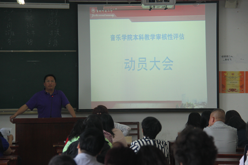 5月7日下午,音乐学院召开本科教学审核评估动员大会,院党委书记尹毅主持并讲话,学院党政领导以及一百余名教职工参加了大会。