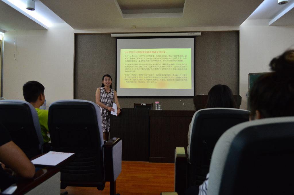 课上,舒梦月对十八大以来习近平总书记系列重要讲话精神和意义进行了详细介绍,明确了“四进四信”的总体思路,即坚持“三结合”,以“进支部、进社团、进网络、进团课”为手段,以“信仰、信念、信任、信赖”为目标,并倡导同学们结合自身专业的特点,多层次、多形式全面地开展学习活动,深入贯彻、落实习近平总书记的讲话精神。同学们还对“中国梦”展开了热烈地讨论。最后,全体团员观看了 “四进四信”的视频小短片。