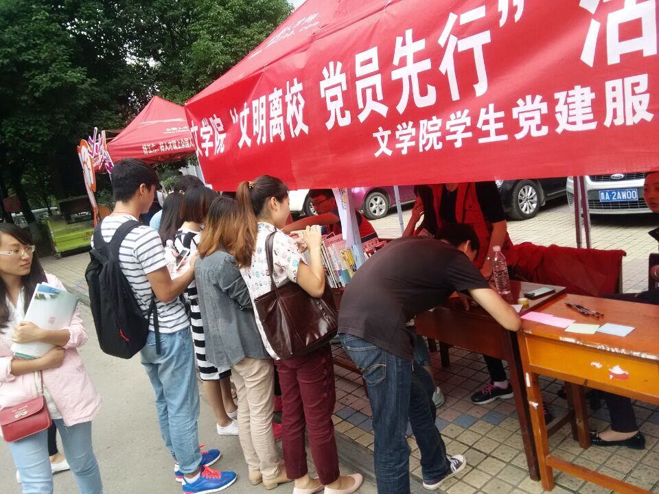 为发挥广大毕业生党员的先锋模范作用,号召毕业生党员带头做到文明离校,在文学院党委的要求下,文学院学生党总支组织开展了“文明离校 党员先行”活动,活动由文学院学生党建服务团承办。