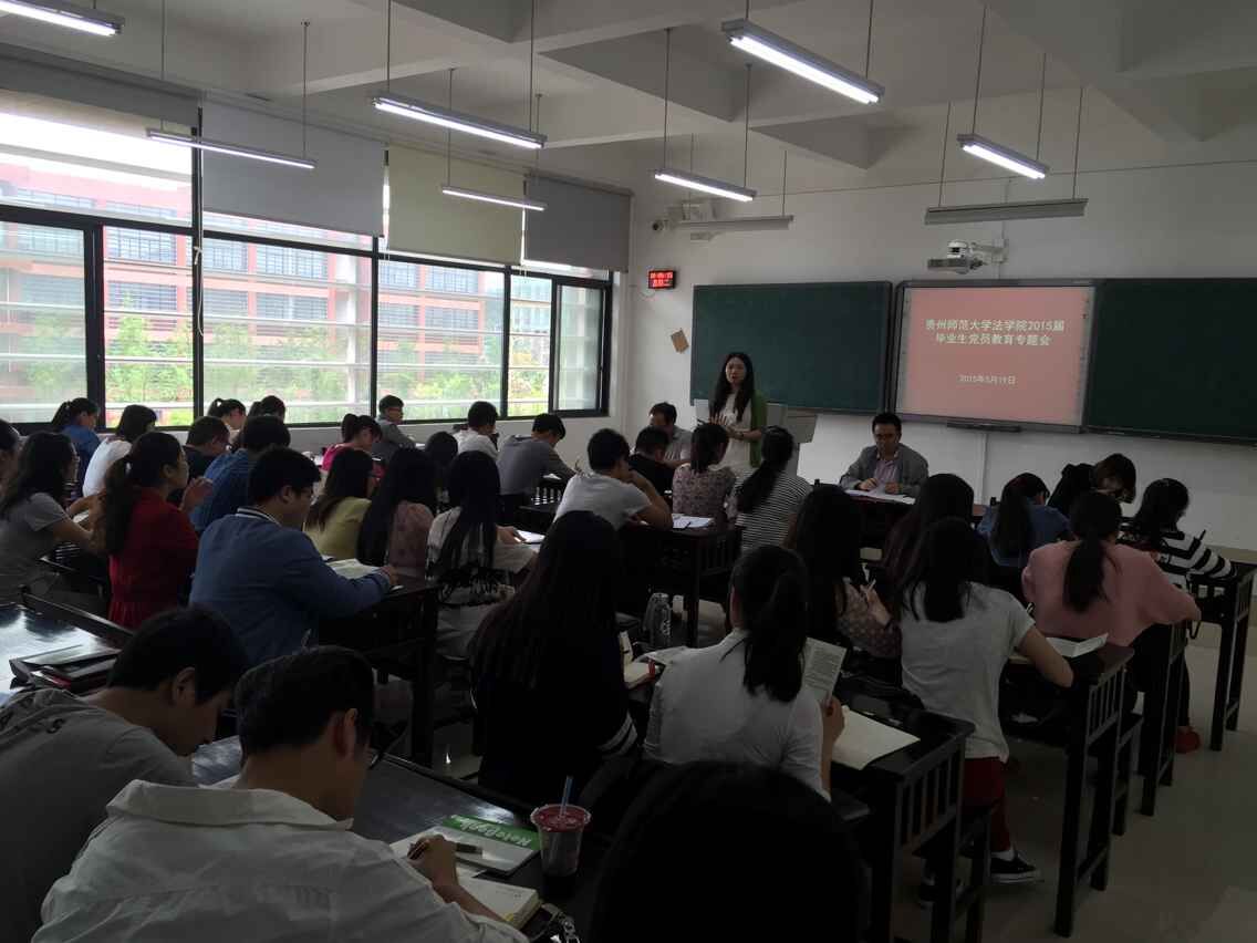 5月19日,法学院2015届毕业生党员开展党性教育专题活动。法学院党委书记蒙黎明、党委秘书张盈盈、团委书记欧秀松出席。活动由副书记林也婷主持。2015届全体学生党员参加。