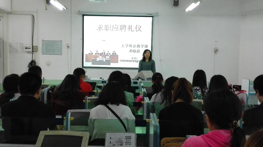 大学外语教学部研究生会邀请党总支书记邓晓蒨,分别于5月8日和15日,向大外部全体研究生开展了精彩的面试礼仪培训讲座。
