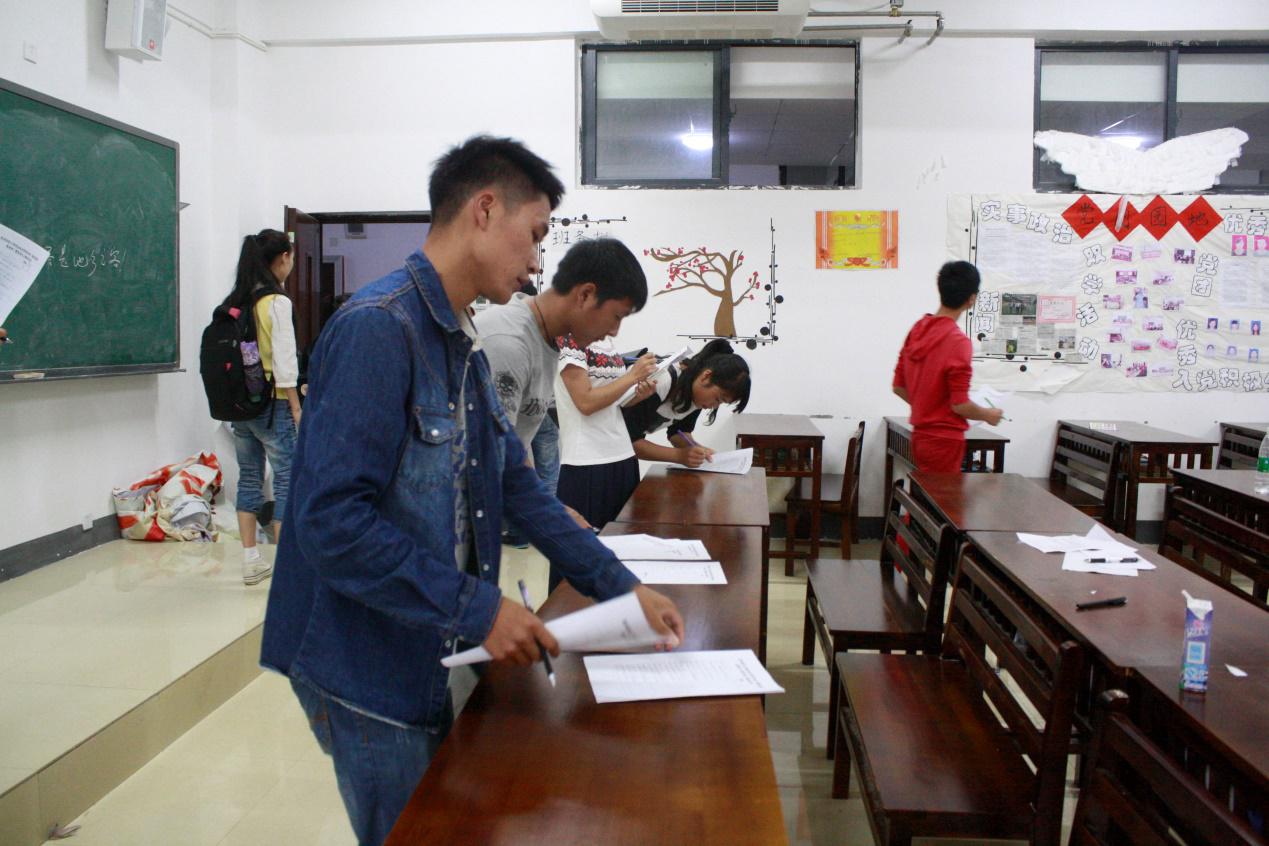 为了响应“我的大学与我的中国梦”主题团日活动的号召,激发全院学生的积极性和创造性,增强班级荣誉感和班集体的凝聚力,美化学生的第二个家。职业技术学院团委学生会组织的评比队伍于6月5日,展开了对学院各班级的班级美化成果进行评比。此次评比队伍成员主要是来自各班的班长,由他们组成了大赛的评委对各班教室的创意设计进行评分。