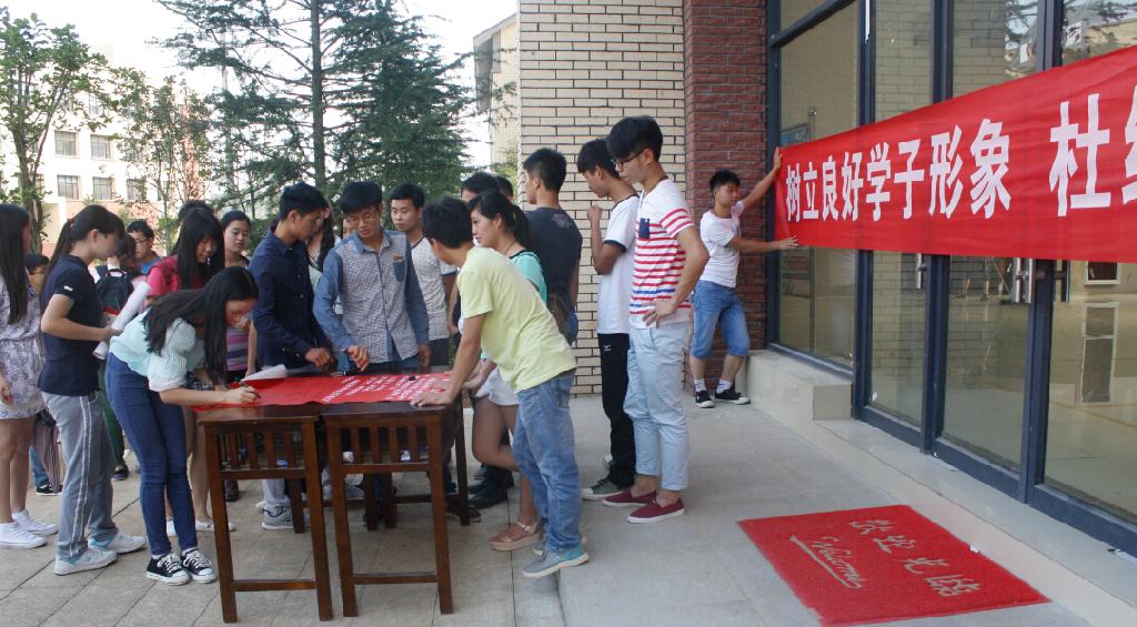 活动开始后,学生党员、优秀团员们拉起横幅,带头在诚信考试承诺书上签下自己的名字,表明了他们诚信应考的信心和决心,来往的同学纷纷驻足阅读诚信考试倡议书,并表示,在以后的考试中,他们也一定会端正态度,积极备考,用实力说话,在考试中决不作弊。