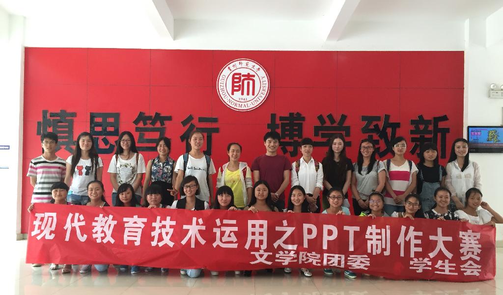 6月16日中午,文学院在花溪校区GJ1304举行了PPT大赛决赛。此次决赛主题围绕“2014年工作汇报”,在初赛中脱颖而出的吴慧芳、黄燕莉、于慕清、李紫英等九名同学参赛,文学院团委书记杨定,院学生会主席柴松、副主席骆弟燕担任评委。文学院学生会全体成员到场观看。
