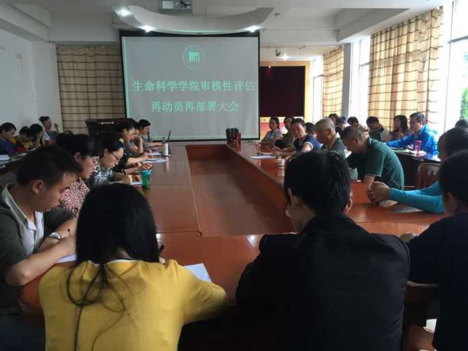 6月19日下午,生命科学学院在学院三楼会议室召开审核性评估再动员再部署会议。会议邀请学校审核性评估办公室朱建华老师出席。生命科学学院全体教职工参加了会议。