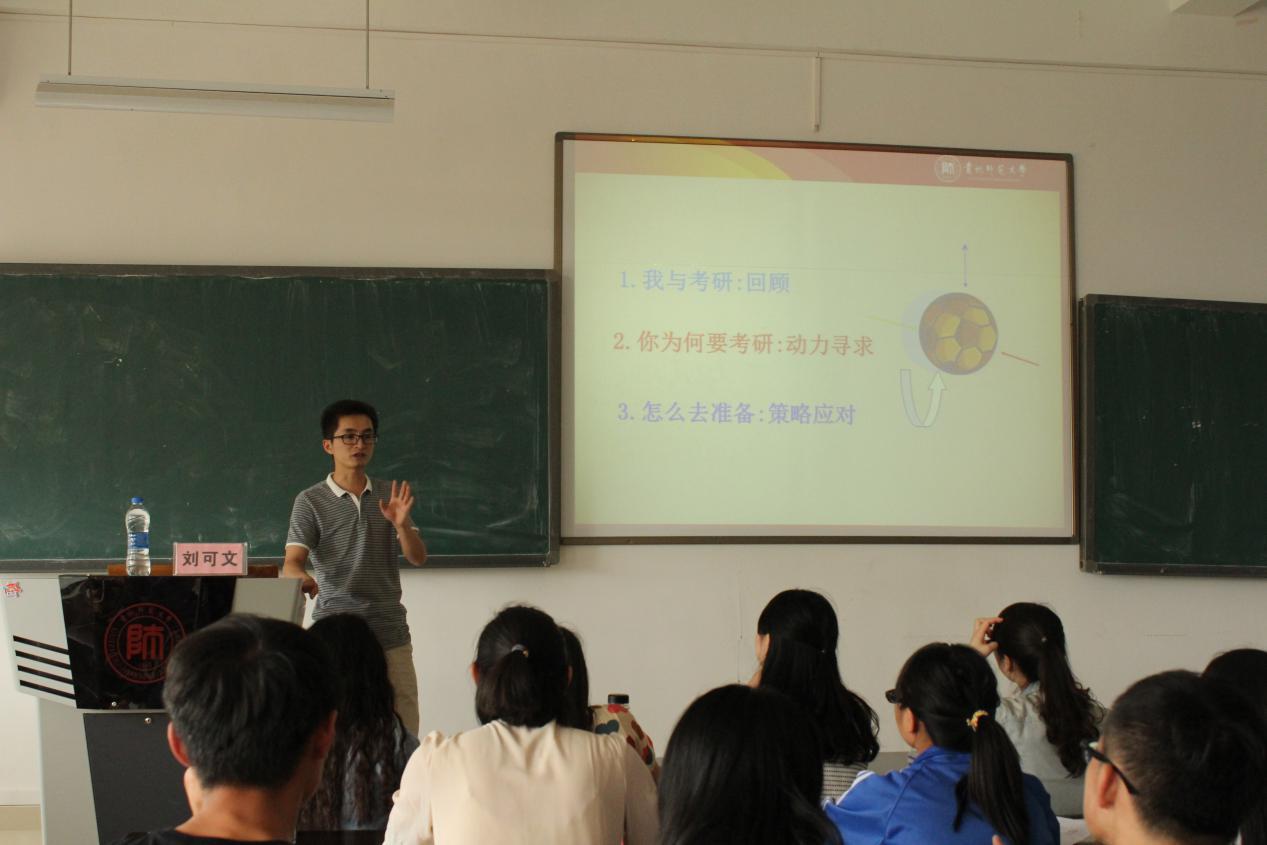 6月24日中午,文学院刘可文老师在花溪校区公共教学楼3313教室与文学院各级同学分享了自己的考研经验。