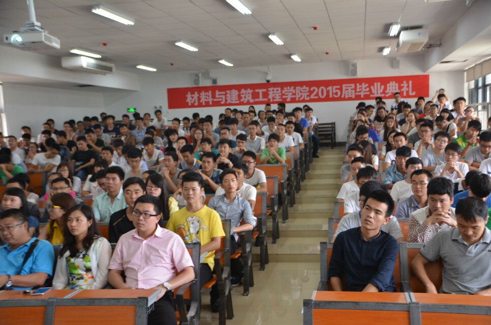 6月26日下午,材料与建筑工程学院于学院3411教室举行了2015届学生毕业典礼。学院党总支书记陈辉林、学院院长刘卫、副院长陈燕菲、副院长陈昌礼、组织员粟灿辉、学院各学科主任、各班级辅导员老师及2015届全体毕业生参加了此次毕业典礼。毕业典礼由学院党总支副书记郑环主持。