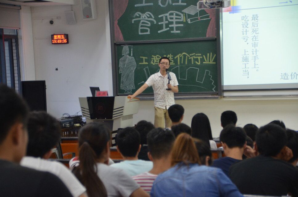 为帮助工程管理专业学生准确有效地了解专业知识,树立大学学习目标,明确学习方向,坚定学习信念。6月26日晚,材料与建筑工程学院于3411教室特邀贵州民族大学袁帅老师为工程管理专业学生带来题为“工程造价行业分析及就业准备”的专业讲座。学院2012级、2013级、2014级三个年级工程管理专业共计200余名学生听取了讲座。
