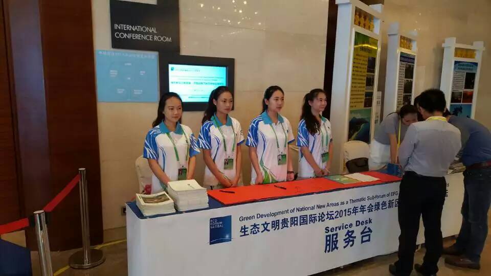 2015年生态文明贵阳国际论坛于6月27日在贵阳隆重开幕并在次日下午闭幕,此次论坛以“走向生态文明新时代:新议程、新常态、新行动”为主题开展。我校155名青年志愿者参与到生态文明贵阳国际论坛志愿服务工作中,为年会提供嘉宾接待、机场接待、酒店服务、会务服务、车辆调度、定点引导等志愿服务工作。