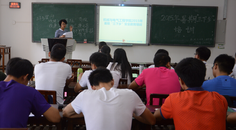 7月3日,机械与电气工程学院2015年暑期“三下乡”社会实践专题培训会在机电大楼8211召开,学院团委副书记许珊、辅导员廖文群及20名“三下乡”志愿者服务队队员参会。