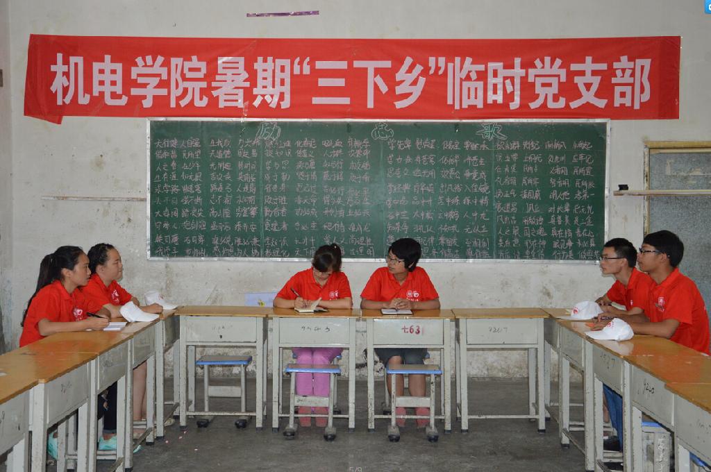 机械与电气工程学院2015年暑期“三下乡”社会实践青年志愿者服务队由2名带队老师、20名学生志愿者组成,围绕“践行‘八字真经’·投身‘四个全面’”主题,于7月16日—23日赴遵义县枫香镇开展社会实践活动。服务队下设理论普及宣讲组、“四个全面”观察组、教育关爱组、“关爱女孩”调研组、“大学生禁毒志愿者走进万户家庭”三下乡专项计划服务组、义务家电维修组、红色教育寻访组等七个工作组。